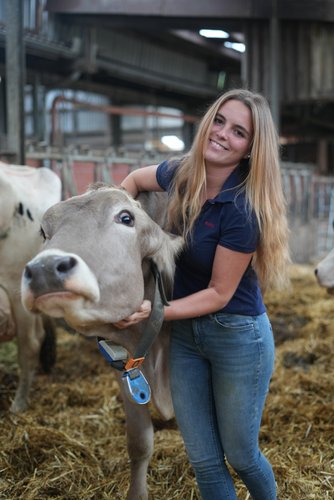 Die Leidenschaft für Braunviehkühe, einer Rasse, die im Allgäu verbreitet ist und ursprünglich aus der Schweiz stammt und daher auch als „Brown Swiss“ bezeichnet wird, begann früh: „Mit zwölf Jahren habe ich auf der Auktion in Krefeld eine Braunviehkreuzung namens Karina gesehen und wollte sie unbedingt haben.“ Ihr Vater ersteigerte das Tier – Karina bedankte sich mit einer Lebensleistung von über 100.000 kg Milch, ist tragend mit dem zehnten Kalb und brachte mehrere Töchter hervor, die heute mit bis zu 75 % Brown-Swiss-Blutanteil im Stall stehen. Ihre Begeisterung für diese Rasse wurde während eines Praktikums in der Nähe von Krefeld weiter gestärkt, wo sie intensiv mit Brown Swiss arbeitete.
