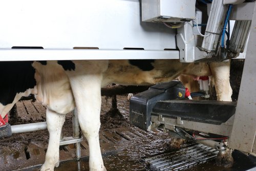 Zum Melken am Roboter kommen die Kühe nach ihrem individuellen Bedarf – und das heißt durchschnittlich 3,6 mal pro Tag. (Foto: DIALOG MILCH)