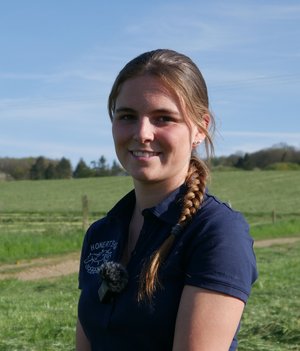 Kathi Honert ist seit Beendigung ihrer Ausbildung auf dem elterlichen Betrieb angestellt und kümmert sich hier gleichermaßen um Tierwohl, Besamungsmanagement und Arbeiten in der Außenwirtschaft. „Ich arbeite ebenso gerne in Stall und Melkstand wie im Feld“, berichtet sie und ergänzt: „Der Hauptteil der von uns bewirtschafteten Flächen ist Grünland.