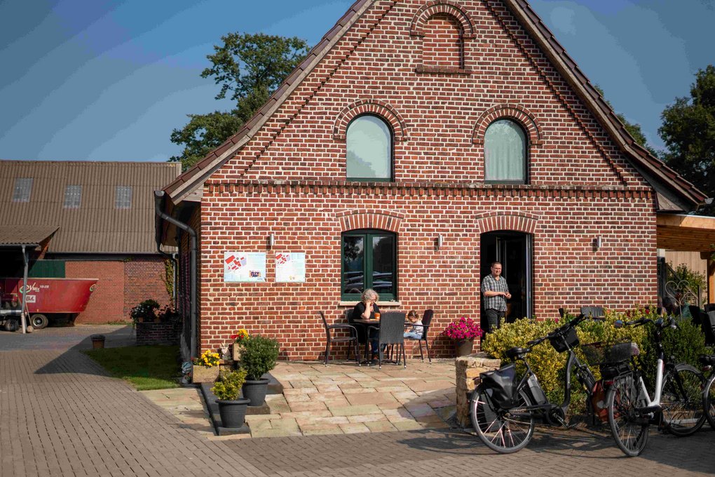 Christina Oskamp, die angehende Betriebswirtin im Molkereifachwesen, freut sich über Besucher im Hofcafé und berichtet stolz von der Produktvielfalt im Hofladen. „Rund 20 Prozent der eigenen Milch werden zu Hartkäse, Weichkäse, Salzlakenkäse, Camembert und die eigenen Eiskreationen verarbeitet. Meine Mutter hatte die Idee dazu, beide Eltern haben ein Eisseminar besucht und dann Stück um Stück auch dieses Segment aufgebaut.