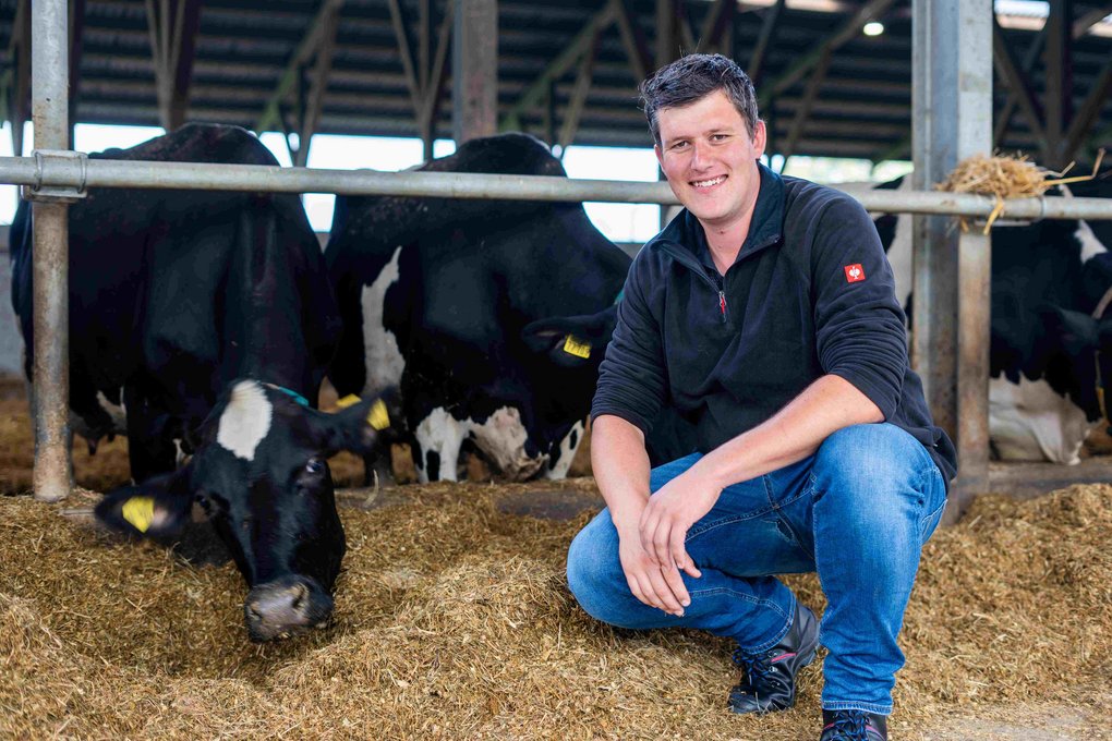 Mit Schwarzbunten, Rotbunten und Braunviehkreuzungen setzen die Oskamps be-wusst auf Vielfalt im Stall. „Wir möchten den Verbrauchern zeigen, dass verschiedene Rinderrassen Milch geben und greifen deshalb auch das Thema Rassen mit unseren Infotafeln auf“, berichtet Stefan. Im Stall setzt er auf Technik, doch verbringt er dennoch viel seiner Arbeitszeit bei seinen Kühen im Stall. „Wir melken unsere Kühe seit einigen Jahren mit einem Melkroboter. Das entlastet die täglichen Arbeitsspitzen – aber die anderen Arbeiten im Stall bleiben natürlich. Und da wir uns wegen des höheren Kuhkomforts für Stroheinstreu entschieden haben, ist allein das Einstreuen – neben der steten Tierbeobachtung, dem Futteranschieben, der Reinigung der Laufgänge und natürlich der Reinigung des Melkroboters – eine der vielen regelmäßigen Arbeiten im Stall, die auch weiterhin anfallen und zu erledigen sind.“