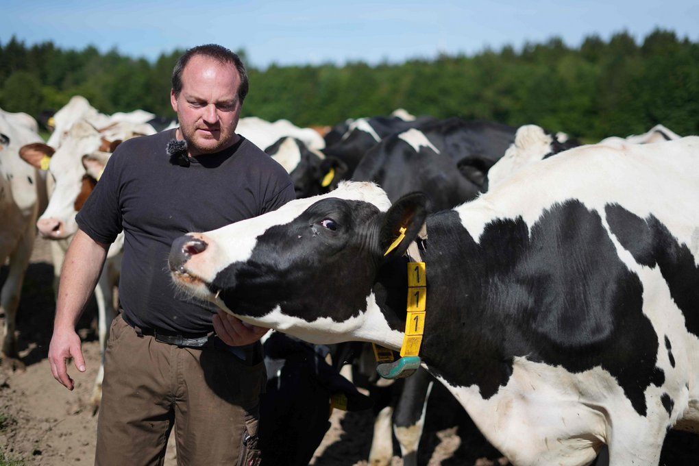 Landwirt Stefan Struben bei seinen Kühen auf der Weide