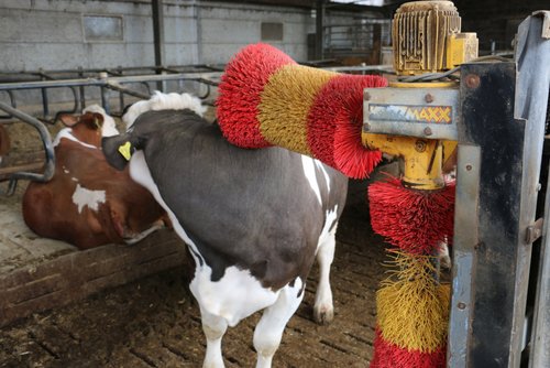 „Wellnessbereich“ im Stall von Basti Bützler: Die Kuhbürsten werden stark frequentiert.