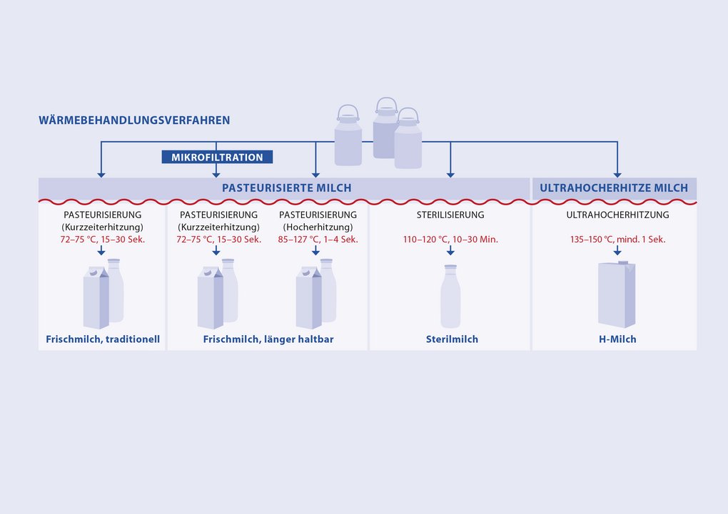 Um die Haltbarkeit der Milch zu verlängern, wird sie in den Molkereien wärmebehandelt. Bei der Wärmebehandlung steht die Haltbarkeit jedoch nicht an erster Stelle, sondern die Lebensmittelsicherheit. Im Sinne des Verbraucherschutzes unterliegen die Molkereien einer gesetzlichen Sorgfaltspflicht: Sie müssen gewährleisten, dass ihre Produkte unter hygienischen Gesichtspunkten sicher sind. Auch strengste Hygiene bei der Milchgewinnung kann nicht hundertprozentig ausschließen, dass krankmachende Keime in die Milch gelangen. Sind sie einmal da, können sie sich stark vermehren und eine Gesundheitsgefährdung darstellen, insbesondere für Kinder, ältere Menschen und immungeschwächte Personen. Durch die Reduzierung der allgegenwärtigen Umweltkeime in der Milch wird Lebensmittelsicherheit und gleichzeitig eine Verlängerung der Haltbarkeit erreicht.
