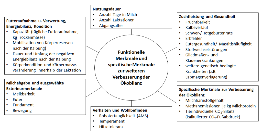 So ist das Zuchtziel für diese Rasse darauf ausgelegt, eine möglichst hohe Lebensleistung der Kühe zu erreichen, die dabei gesund, fruchtbar und robust sind. Zukünftig sollen auch Merkmale wie Persistenz und eine gute Futterverwertung mehr in den Fokus der Zucht rücken. Eine gute Persistenz ermöglicht eine gleichmäßig hohe Milchleistung über einen langen Zeitraum, ohne dass schon nach einem Jahr ein neues Kalb geboren werden muss. Viele Kühe haben schon heute eine gute Persistenz. Für eine gezielte Zucht auf dieses Merkmal, oder auch auf Futtereffizienz, werden jedoch objektive Instrumente wie Zuchtwerte benötigt, die es ermöglichen, unabhängig von Umweltfaktoren die besten Tiere zu finden. Nur dann lassen sich Merkmale für die Nachkommen-Generation gezielt verbessern. Beide Zuchtwerte können helfen, ressourcenschonender zu wirtschaften und die Milchproduktion entsprechend umweltfreundlicher zu gestalten.