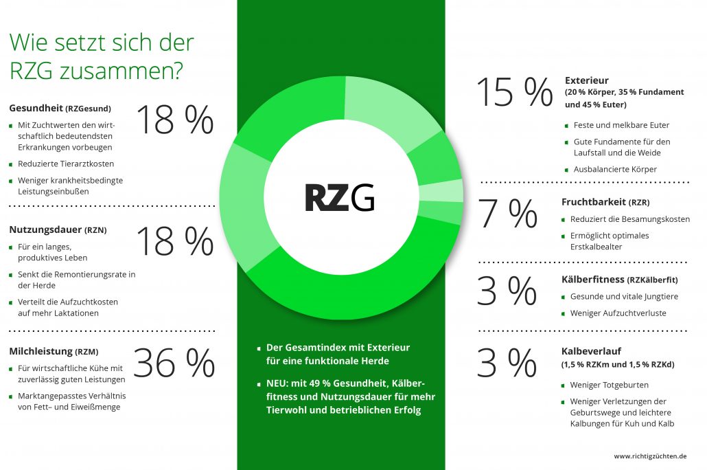 Eine Rasse, die sowohl auf eine hohe Milchleistung als auch einen guten Fleischansatz gezüchtet worden ist, ist z.B. die Rasse Deutsches Fleckvieh. Sie ist nach den Deutschen Holsteins die zweithäufigste Rasse. „Das Zuchtziel beim Deutschen Fleckvieh umfasst mittlerweile 12 Merkmale, darunter neben Milch und Fleisch vor allem Langlebigkeit, Fruchtbarkeit, Kalbeverlauf und Eutergesundheit. Zunehmend berücksichtigen wir auch direkte Gesundheitsmerkmale, wie zum Beispiel Stoffwechselstabilität, aber hier stehen wir erst am Anfang. Dabei machen diese sogenannten Fitnessmerkmale inzwischen einen höheren Anteil im Zuchtziel aus als die Milchleistung“, heißt es etwa bei der Bayerischen Landesanstalt für Landwirtschaft.